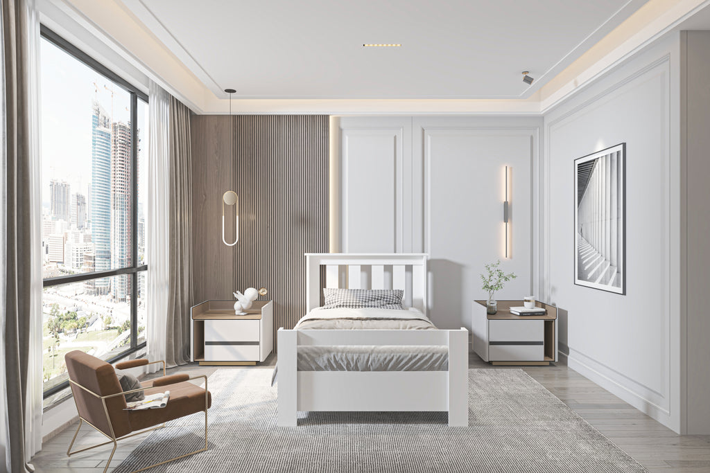 Alesta 90x190 Yatak Uyumlu Tek Kişilik Bazalı Beyaz MDF Karyola