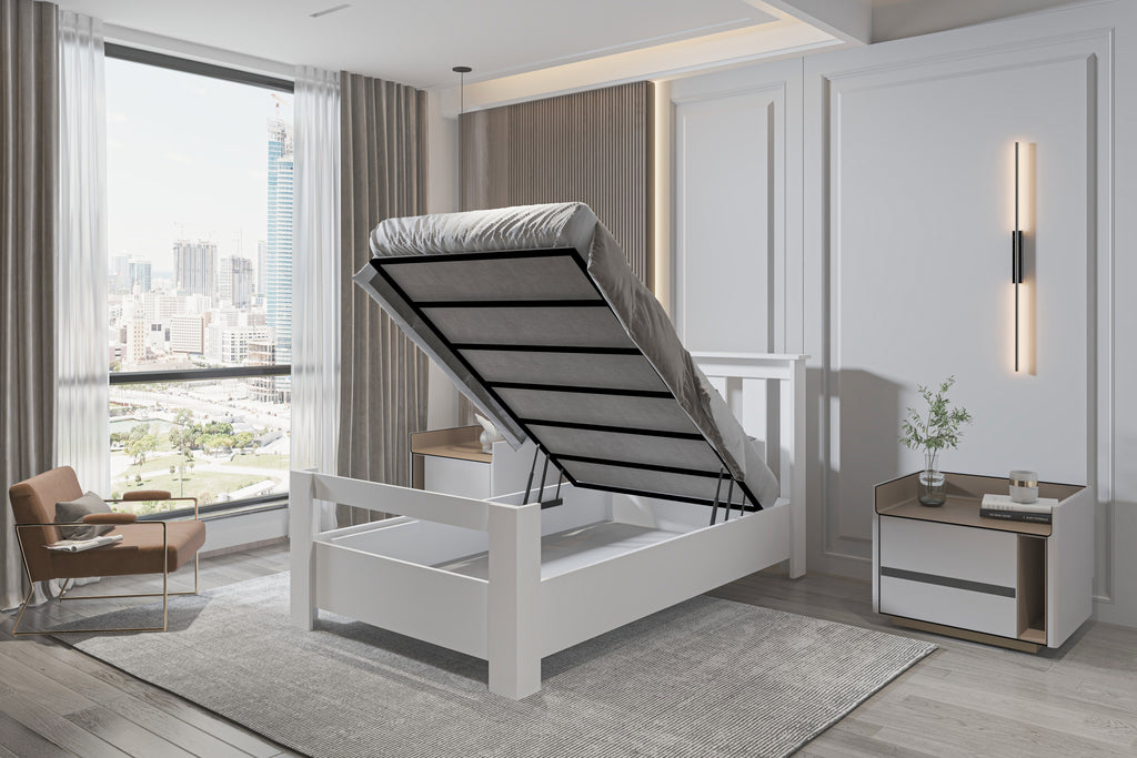 Alesta 100x200 Yatak Uyumlu Tek Kişilik Bazalı Beyaz MDF Karyola