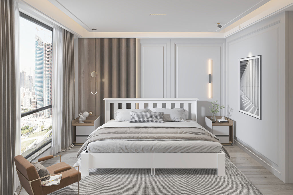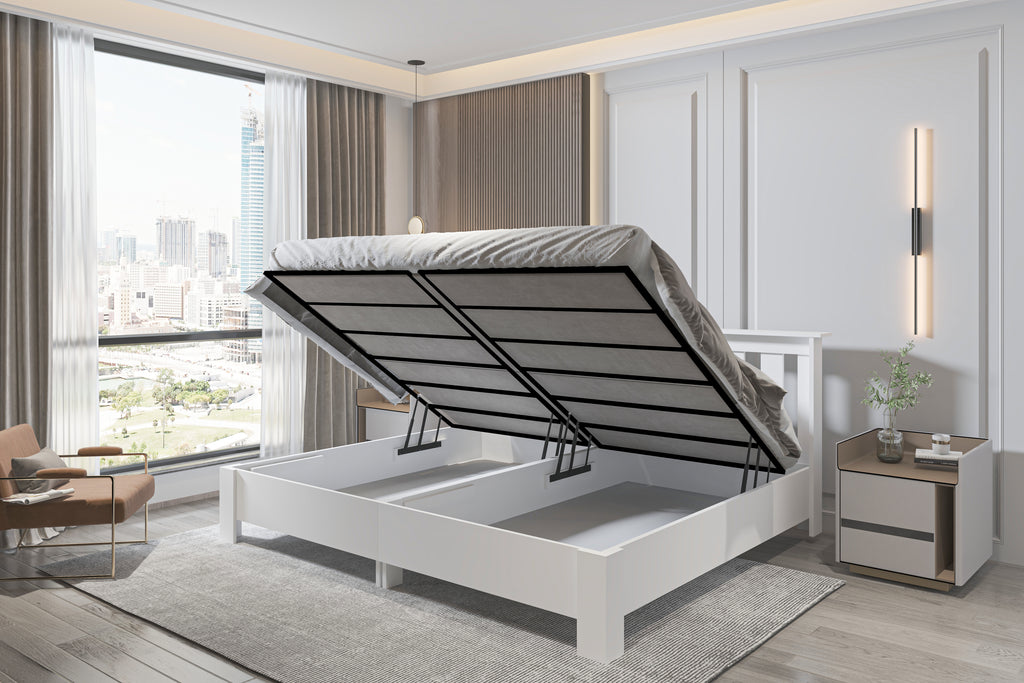 Altay 200x200 Yatak Uyumlu Çift Kişilik Bazalı Beyaz MDF Karyola Ölçüleri