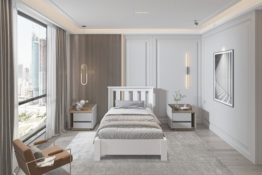 Altay 90x200 Yatak Uyumlu Tek Kişilik Bazalı Beyaz MDF Karyola