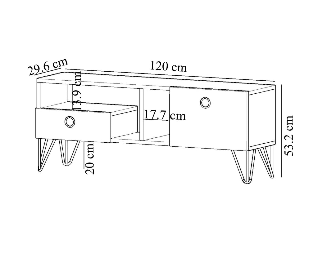 Tv Ünitesi Ölçüleri Genişlik:120 cm Yükseklik:53.2 cm Derinlik:29.6 cm.