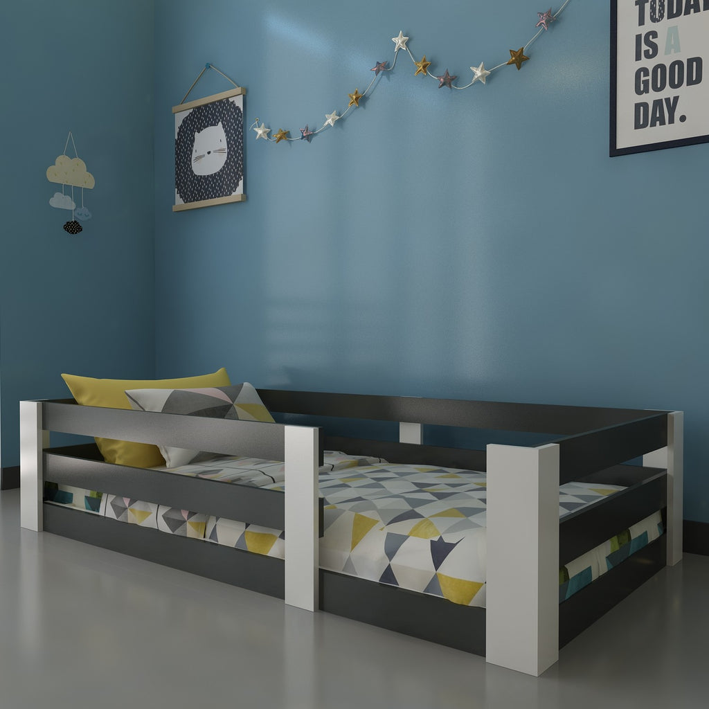 Ninnimo 90x190 Yatak Uyumlu Antrasit Beyaz Montessori Karyola- Y19-41