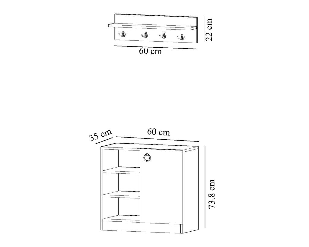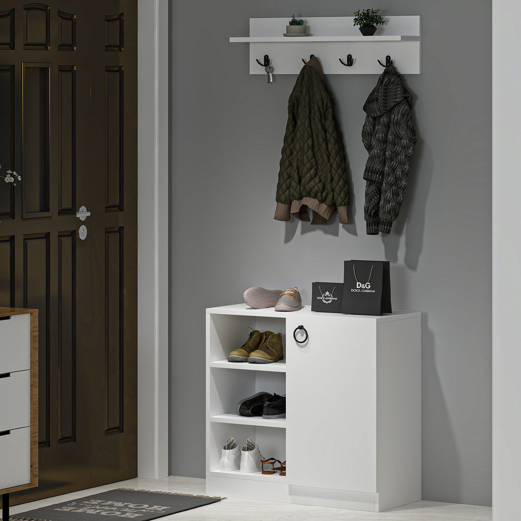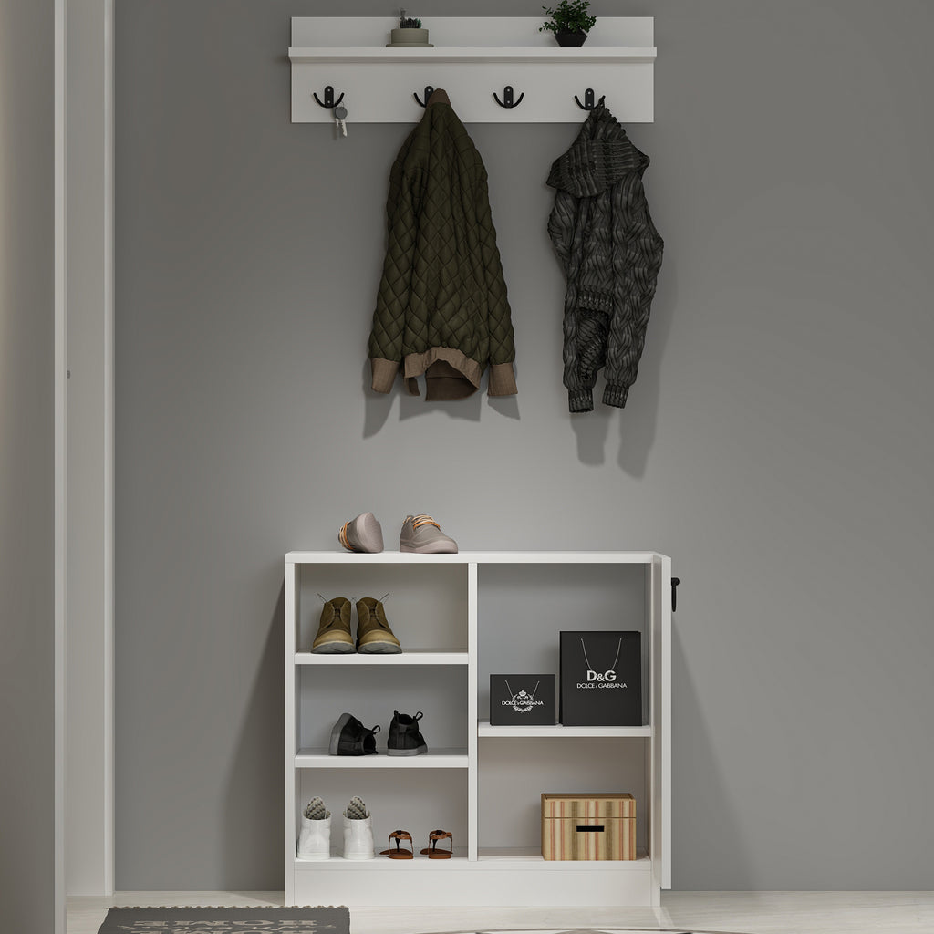 Seri Duvar Askılıklı Ayakkabılıklı Beyaz MDF Vestiyer Portmanto